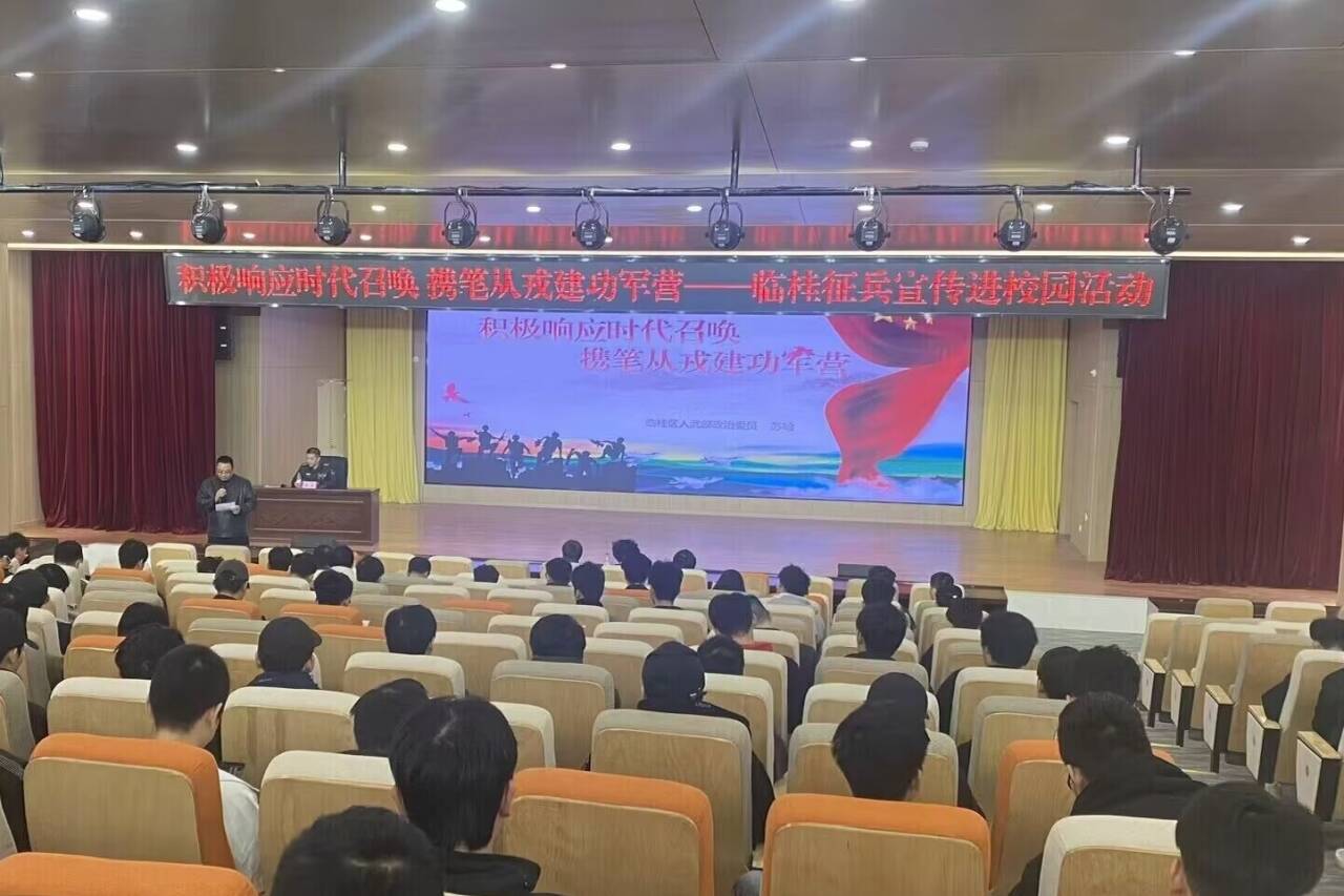 为扎实做好2023年冬季大学生征兵宣传动员工作,12月8日,学校在F107报告厅举办“积极响应时代召唤,携笔从戎建功军营”征兵宣传进校园活动,征兵宣讲由中国人民解放军临桂区人武部上校政委苏瑜担任主讲。我院各毕业班辅导员积极组织2024届毕业生参加征兵宣传进校园活动。