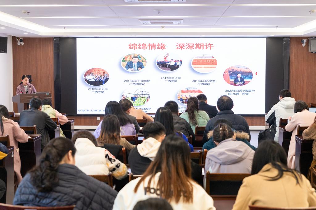 为强化机关教工党员的理论武装,不断提高党性修养,12月6日下午,学校机关党总支在知行楼818会议室举办学习习近平总书记视察广西时的重要讲话精神及习近平总书记关于教育的重要论述专题党课,党课由机关党总支书记王南萍主讲。