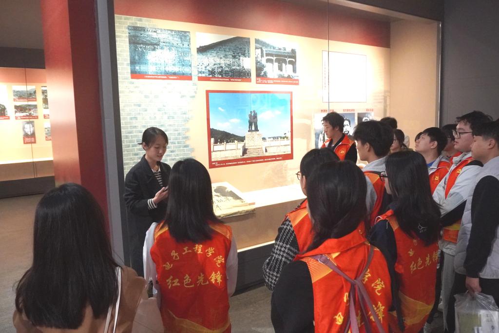 参观当日,恰逢桂林博物馆与井冈山革命博物馆联合举办“革命雄师会井冈”专题展。党支部全体成员参观了“革命雄师会井冈”专题展,该展全面系统展现了毛泽东等老一辈无产阶级革命家在湘赣边界领导军民创建中国历史上第一个农村革命根据地,开辟了“农村包围城市、武装夺取政权”的井冈山革命道路的伟大实践历程。活动中,党支部书记陈思宇根据井冈山革命根据地的创立、发展和转移的时间脉络进行现场解说。陈思宇强调,井冈山会师是中国革命的重要里程碑,同学们应铭记历史,大力弘扬井冈山精神,继承革命先烈遗志,践行好新时代的革命精神。
