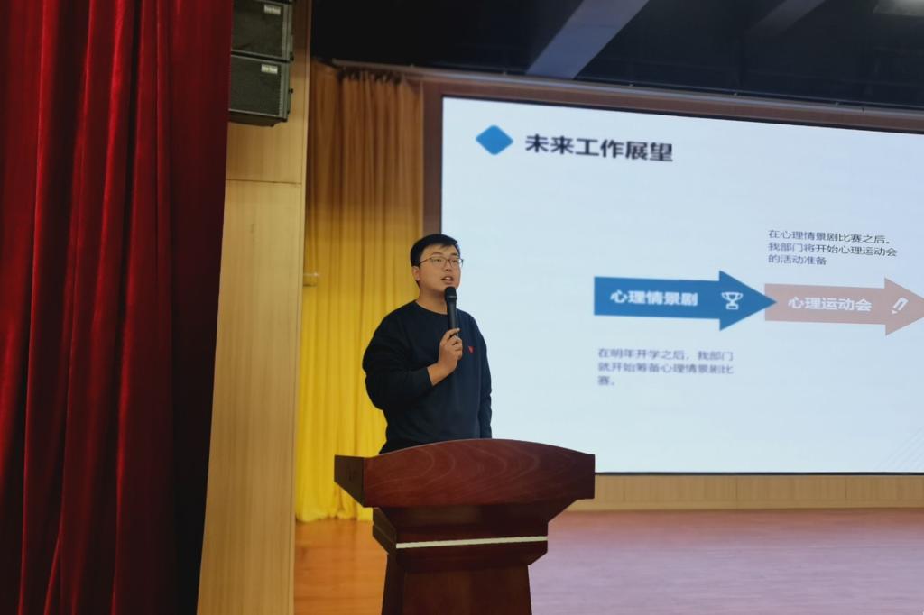 会上,分团委学生会各部门部长依次进行了年终述职报告,分别汇报了本部门在过去一年开展的工作情况、工作成效、特色亮点、存在问题以及2024年工作计划。