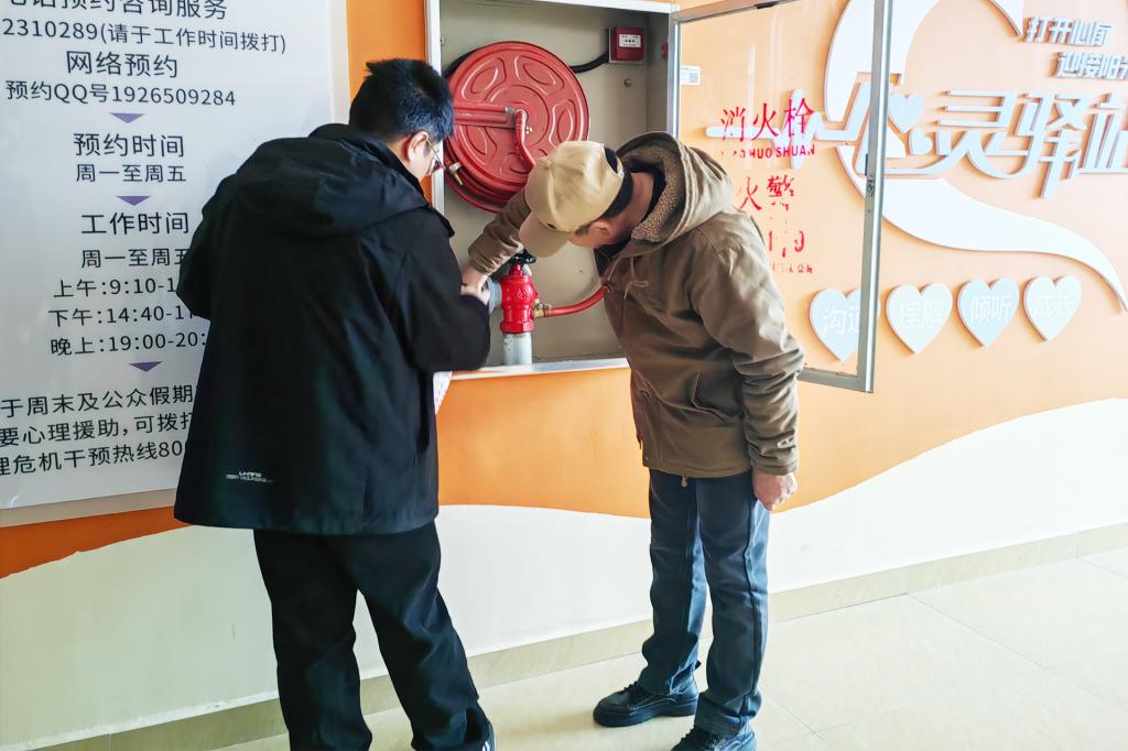 学院领导排查楼道消防栓情况