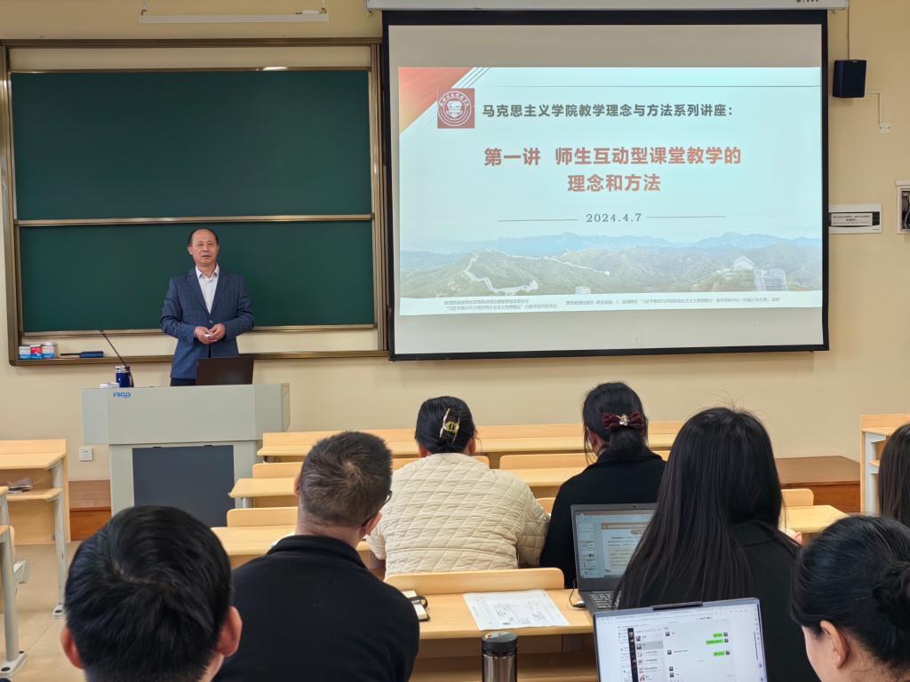 为进一步提高教师课堂教学的能力,提高课堂教学质量,增强思政课课堂教学效果,4月7日下午,马克思主义学院在C514教室组织“教学理念与方法系列讲座”的第1讲--《师生互动型课堂教学的理念和方法》。本次讲座由马克思主义学院邱启照院长主讲,马克思主义学院全体教师参加。