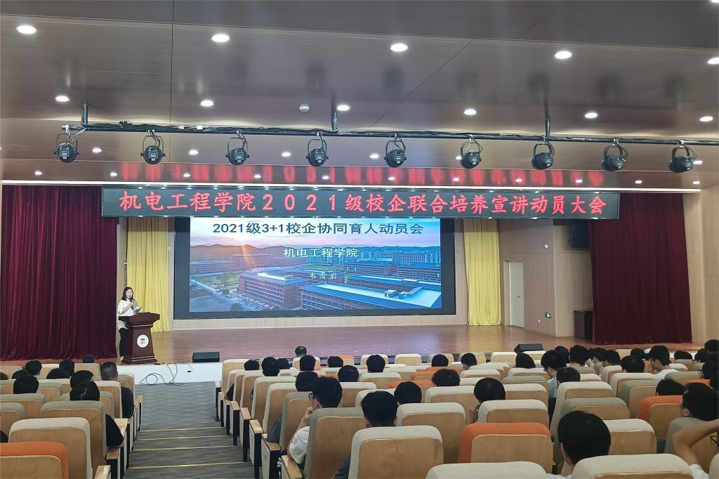 为加强校企合作,积极推进应用型人才培养,5月13日,机电工程学院在F107举行2021级校企联合培养动员大会。机电工程学院党委书记文超、院长助理韦雪岩、2021级辅导员及2021级意向参与校企联合培养学生学生340余人参加此次动员会,会议由韦雪岩主持。