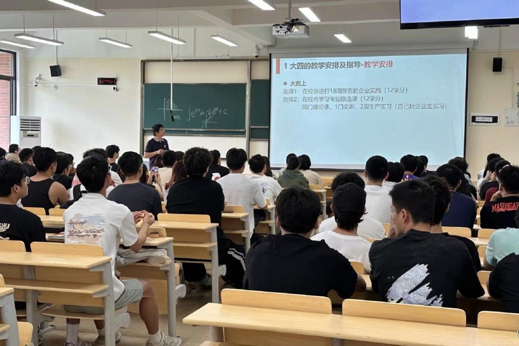 会上,各教研室主任就此次校企联合培养的实施方案与教学安排向同学们进行了介绍,同时针对往年的考研和就业情况作了简要分析,给参会学生对于未来规划提供了参考价值。随后,老师介绍了学院近年来开展校企联合培养的概况和成效,详细分析了学生参加校企联合培养的意义和目的。最后,同学们通过观看校企联合培养公司简介,进一步激发了学生们参与校企联合培养学习的热情和决心。