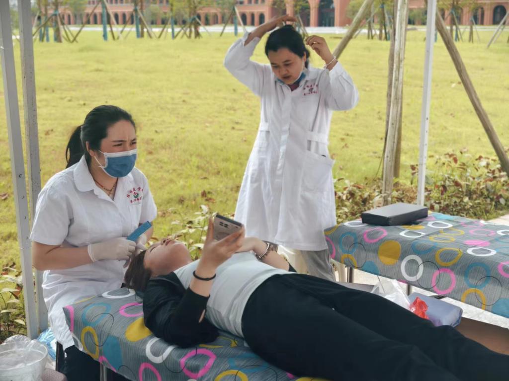 活动现场,医护人员耐心、认真的解答了每位咨询者的问题,现场为学生们普及科学护肤的基本方法,包括清洁、保湿和防晒的重要性,指导学生们如何根据自己的皮肤类型选择合适的护肤品,义诊现场还准备了护肤宣传手册。针对大学生高发的痤疮问题,医护人员提供了专业的防护和治疗建议,同时也为痤疮严重的咨询者提供了免费现场水杨酸治疗,并为学生们发放了精美的医用护肤品。本次活动共为200多位老师和同学提供了咨询服务,活动得到了老师同学们的一致好评,并对医护人员表示感谢。