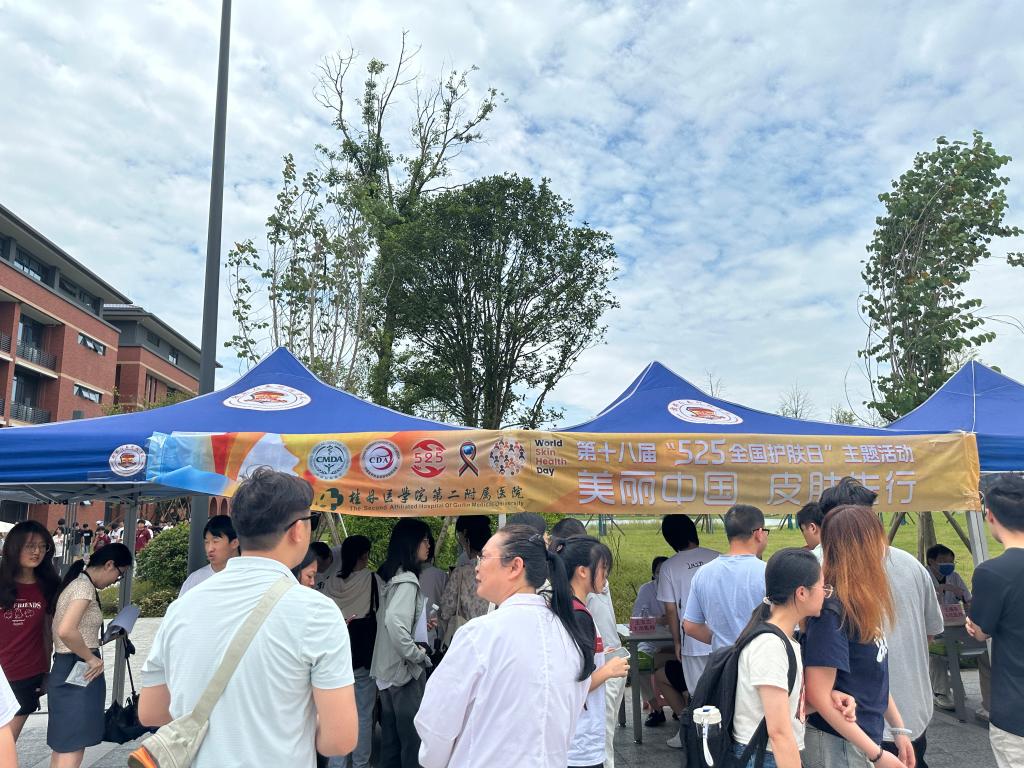 为践行我为师生办实事行动,学校团委联合桂林医学院第二附属医院皮肤科开展义诊进校园活动。5月21日中午,10余名医护人员在太阳集团食堂门前活动广场,面向太阳集团师生开展常见皮肤护理、咨询、诊疗服务,帮助树立科学、理性的护肤观念,同时开展皮肤科普宣传。