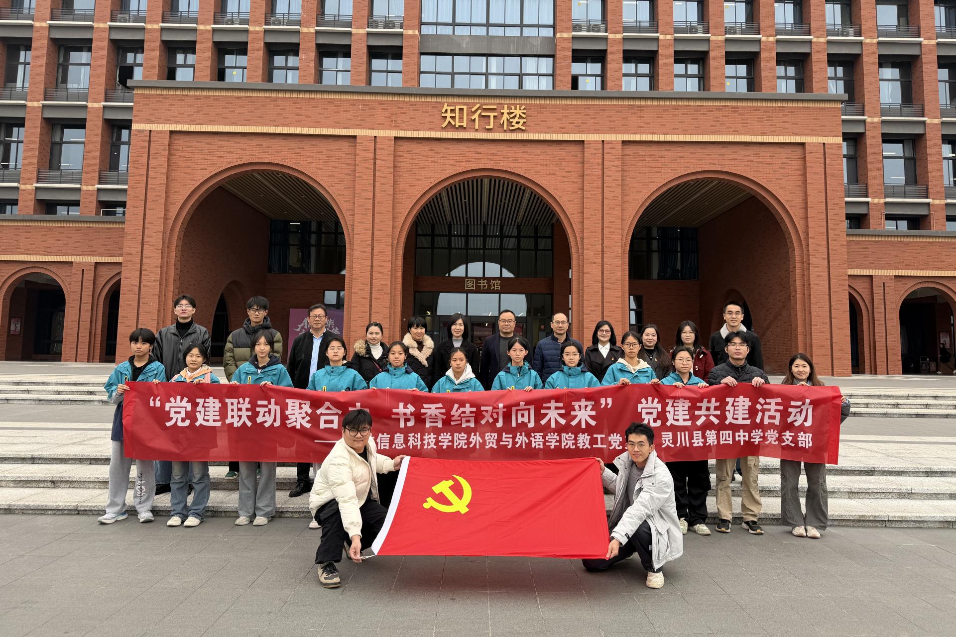 为深入学习贯彻习近平新时代中国特色社会主义思想和党的二十大精神,落实新时代党的建设总要求,搭建校地党建共建桥梁,12月5日上午,太阳集团tcy8722网站外贸与外语学院第一、二教工党支部联合灵川县第四中学党支部,成功举办“党建联动聚合力,书香结对向未来”支部共建参观研学暨图书捐赠仪式活动。灵川四中党支部书记、校长秦利明及师生代表,与太阳集团tcy8722网站外贸与外语学院党委书记、副院长廖星男,副院长陆晓,第一、第二教工党支部的党员教师代表及学生党员志愿者共同参与活动。