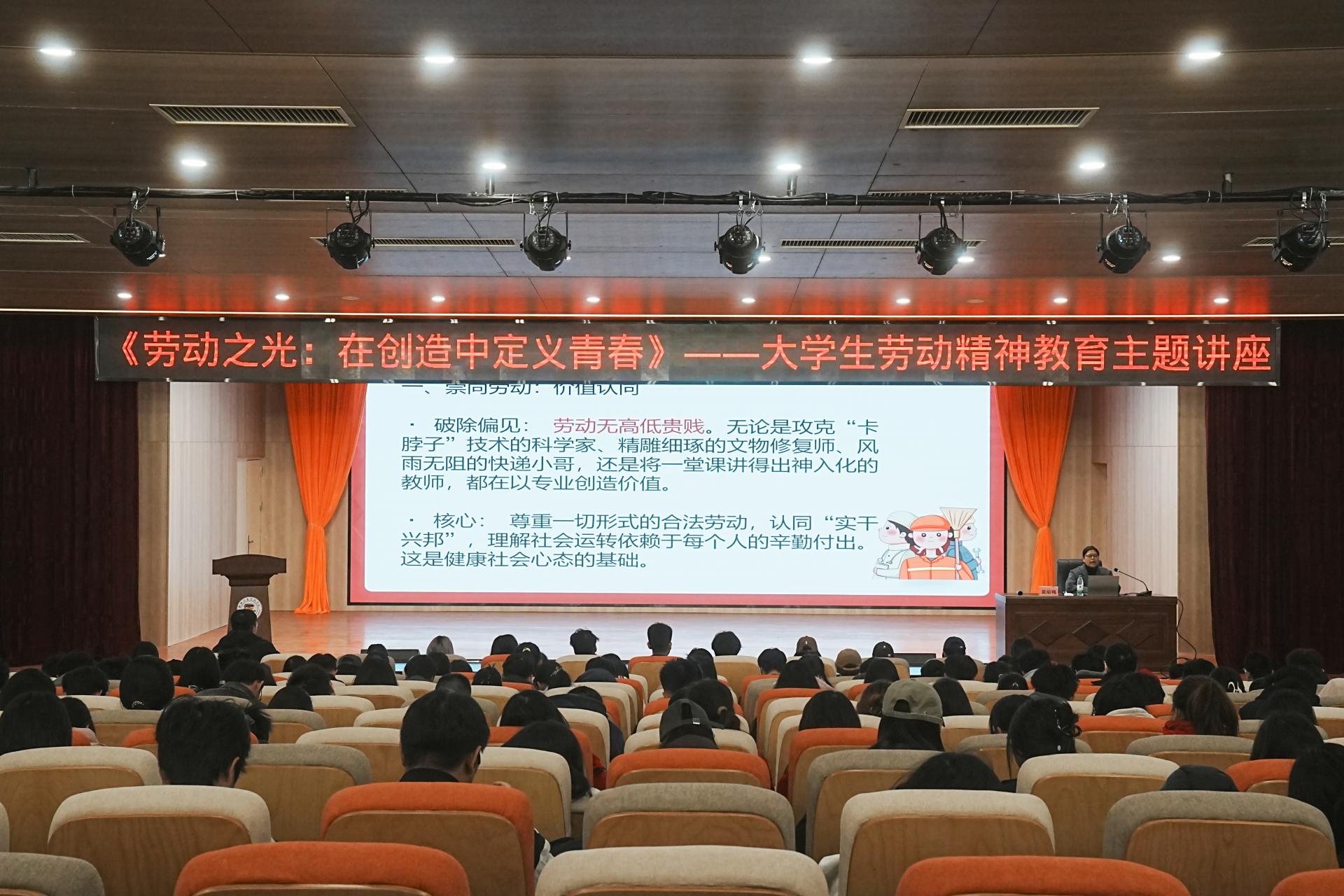 作为活动的思想引领环节,马克思主义学院莫丽梅老师主讲的“劳动之光:在创造中定义青春”主题讲座,为同学们搭建起劳动认知的理论桥梁。讲座中,莫老师结合鲜活案例,系统阐释了崇尚劳动、热爱劳动、辛勤劳动、诚实劳动的深刻内涵,不仅厘清了新时代大学生的劳动价值坐标,更为大家将劳动精神转化为实际行动提供了具体指引,让“劳动最光荣、劳动最崇高、劳动最伟大、劳动最美丽”的理念深入人心。