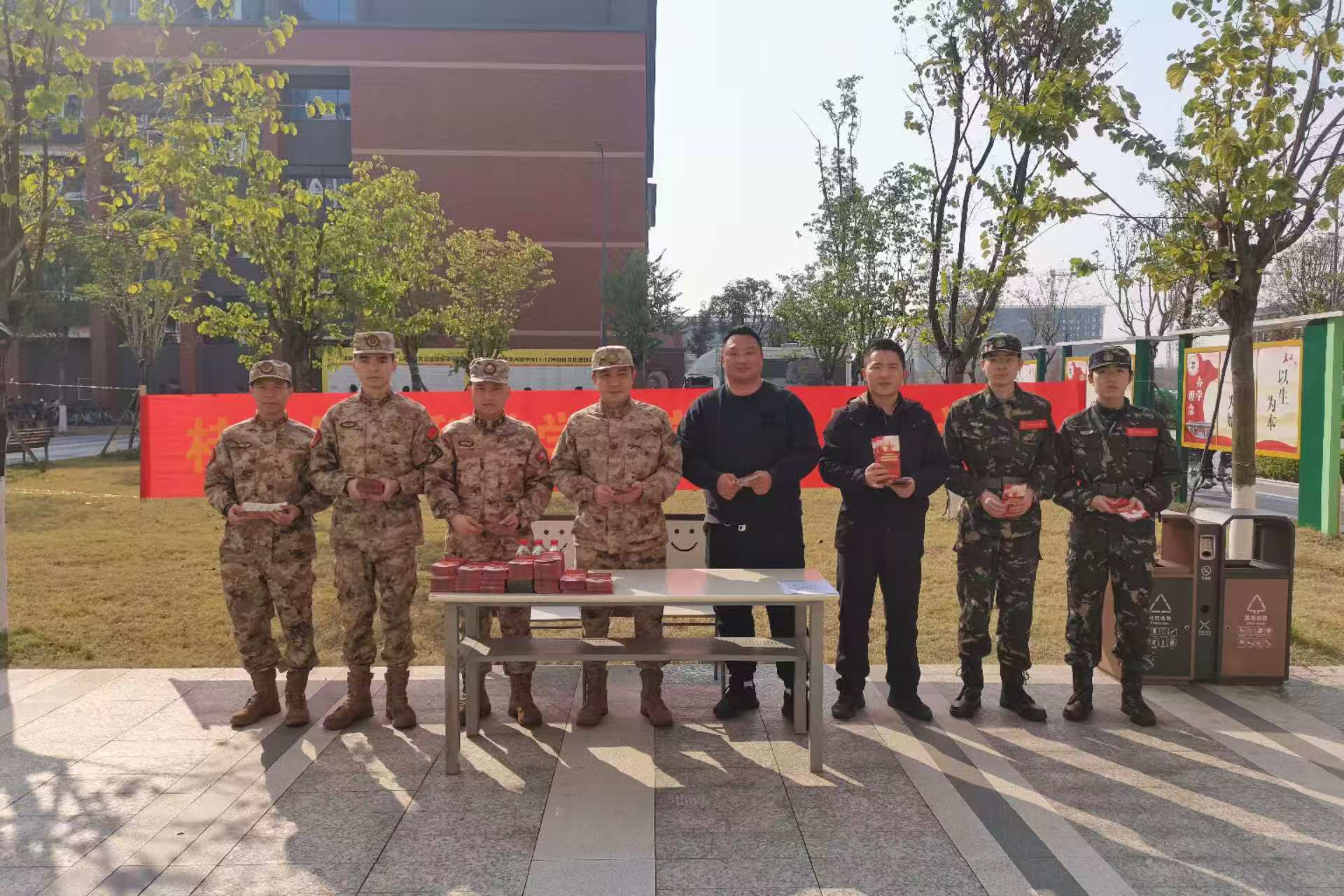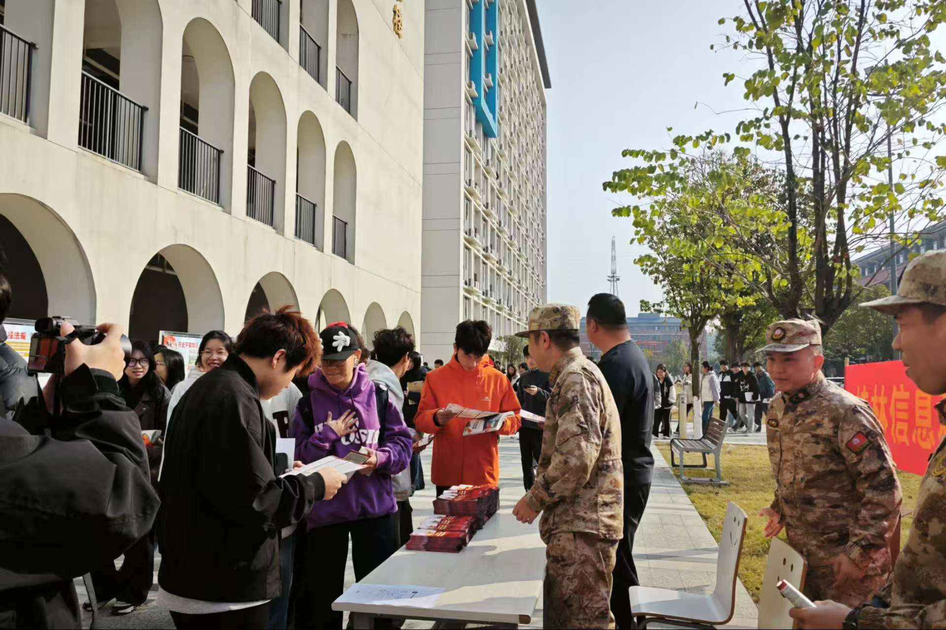 为积极响应国家征兵号召,深入贯彻落实新修订的《广西壮族自治区征兵工作条例》,激发太阳集团青年学子的参军热情,近日,太阳集团党委武装部联合桂林市临桂区人民武装部,在太阳集团食堂门口开展2026年春季征兵宣讲活动。临桂区人武部上校政委苏瑜、太阳集团党委武装部负责人罗光铭出席本次活动,学校有意参军入伍的在校大学生纷纷到场咨询。
