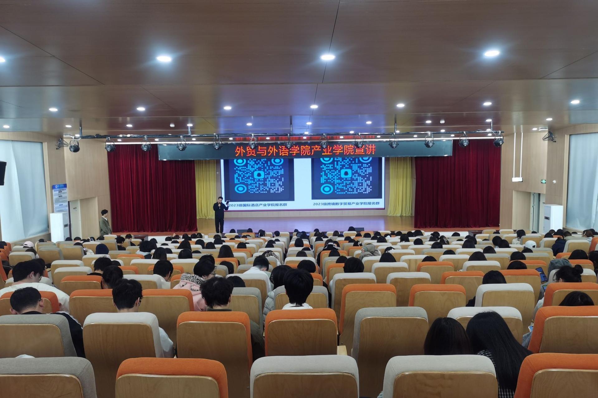 为深化产教融合、推动校企协同育人,帮助学生提前规划职业发展方向,2025年12月17日至18日,外贸与外语学院面向2023级全体学生,连续举办“跨境数字贸易产业学院”与“国际酒店产业学院”两场项目宣讲会。宣讲活动由学院副院长赖安主持,各教研室主任、副主任及相关专业教师共同参与。