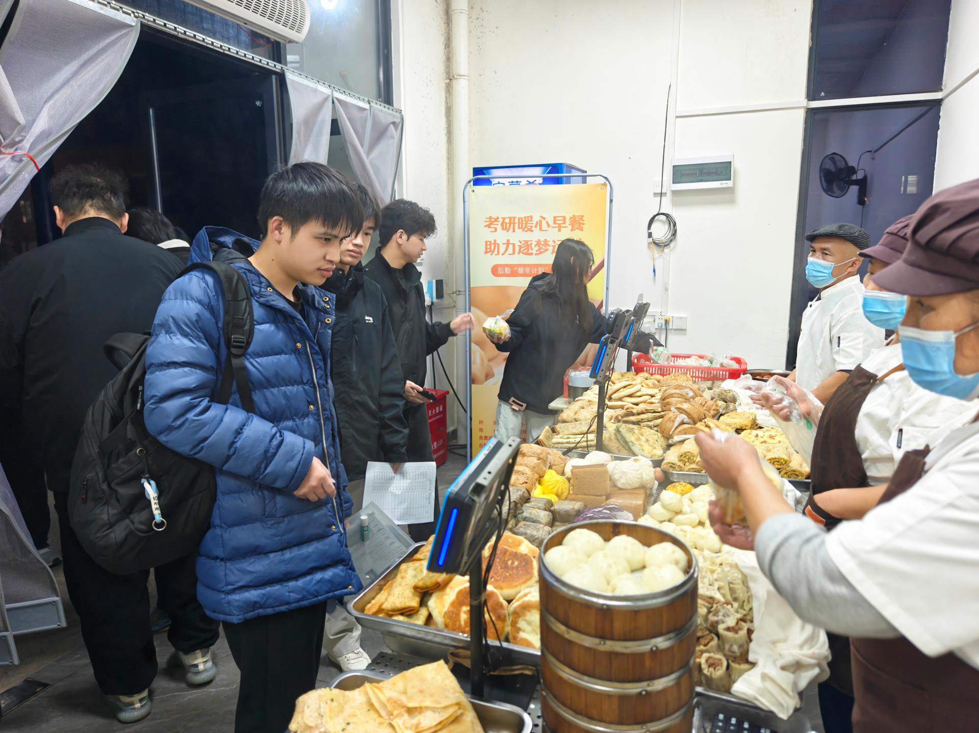 研考启幕,温情相伴。为助力考研学子以饱满状态迎接考试,在全国硕士研究生招生考试12月19日-20日清晨,后勤服务处精心策划开展“爱心早餐助研考”活动,为奔赴考场的百余名学子免费赠送暖心早餐,用实际行动传递关怀,践行“以学生为中心”的服务理念。
