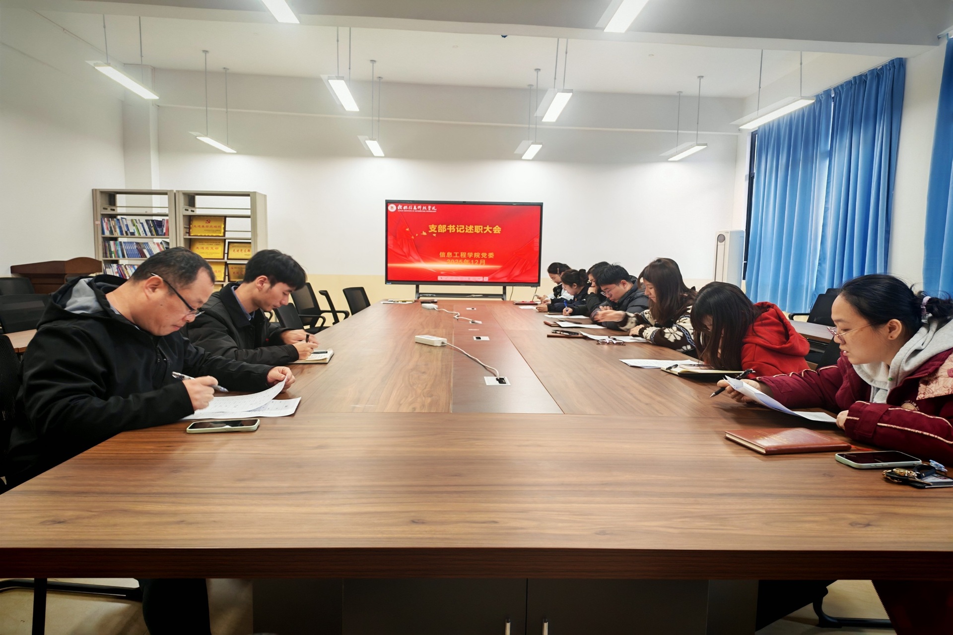 为全面总结过去一年各党支部工作成果,明确未来发展方向,12月29日,信息工程学院党委于B513-2会议室召开支部书记述职大会。本次会议由学院党委副书记马金博主持,学院党委书记郭健、学院党委委员及各支部书记参加。