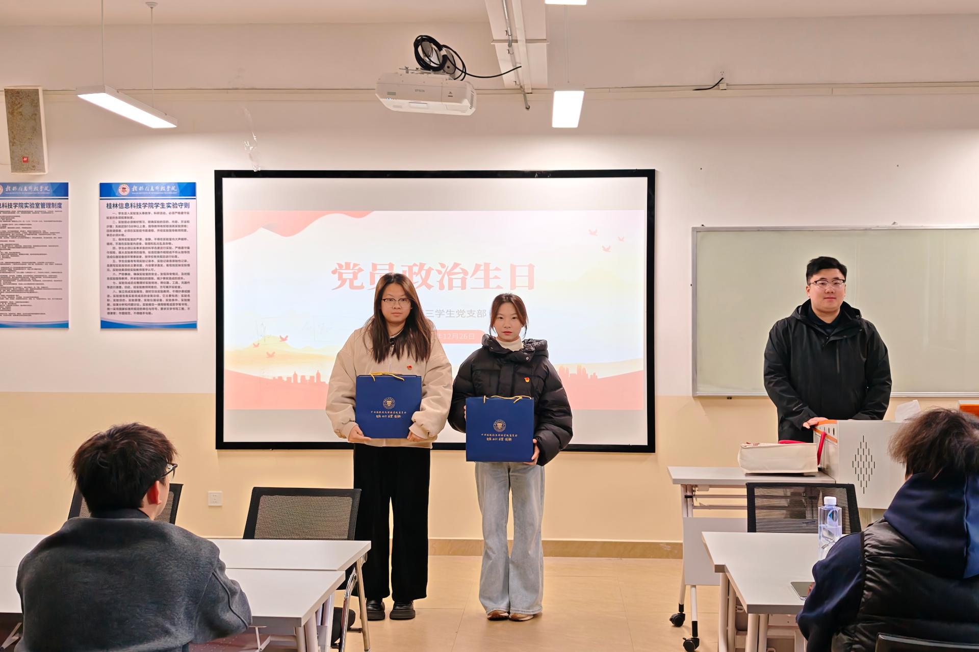活动中,各支部书记为党员送上“政治生日礼包”。其中,党员学习笔记本寓意记录初心轨迹与成长思考,签字笔象征以笔墨践行使命担当,雨伞寄托为师生群众遮风挡雨的服务情怀,充电器则提醒党员常学常新、永葆先进。这份承载组织关怀的礼物,既传递了党组织的温暖,也寄托了对党员的殷切期望。