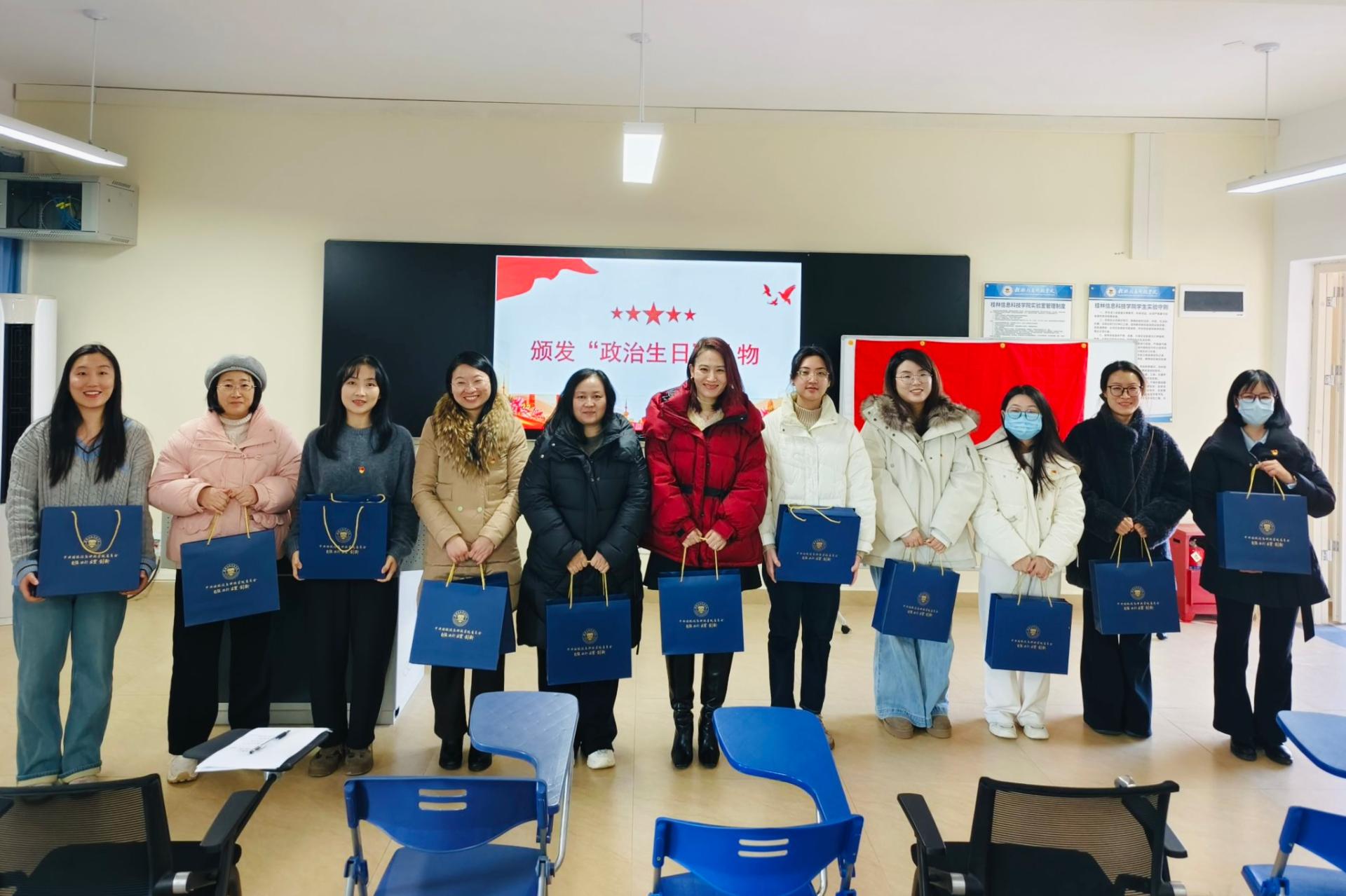 12月26日,外贸与外语学院第二教工党支部在文汇楼509教室举行党支部书记述职暨政治生日仪式,会议由支部副书记闵世琦主持,学院党委副书记杨锦超、学院党委委员赖安、支部书记黎秋艳及全体支部党员参会。