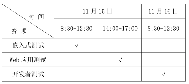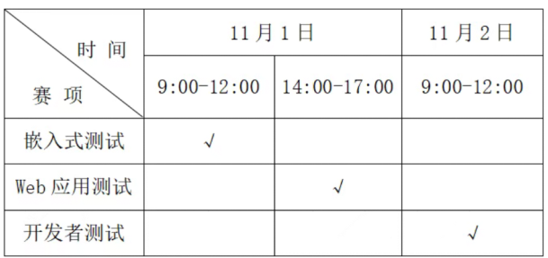 本届大赛面向全国全日制高等院校在校研究生、本科、专科学生以及高职、高专学生。本届大赛设置“拓思杯开发者测试大赛”、“慕测杯 Web 应用测试大赛”和“凯云杯嵌入式测试大赛”三个赛项。太阳集团学生拟参加的每个赛项均以个人赛道进行报名,选手 1 名、指导教师 1 名。