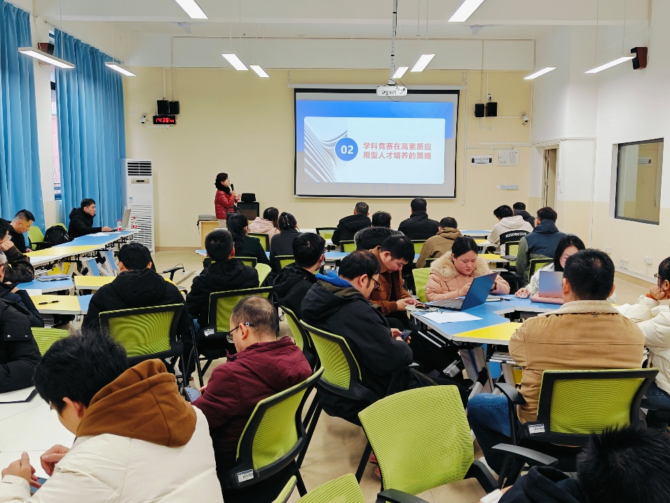 12月19日下午,机电工程学院在C103教室成功举办了一场针对新入职专任教师的培训讲座。本次讲座的主题为“搭建学科竞赛平台,提升大学生创新应用能力”,由王丽娟教授主讲,韦雪岩老师担任主持人。