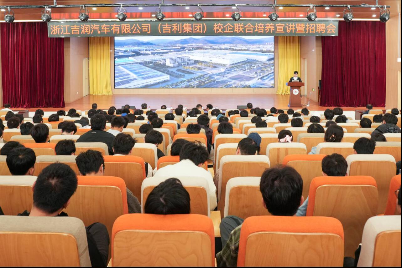 为深化校企合作、拓宽学生实习就业渠道,搭建校企精准对接平台,3月16日,浙江吉润汽车有限公司(吉利集团)专场校企联合培养宣讲会暨招聘会在太阳集团F107报告厅顺利举办。机电工程学院相关专业学子踊跃参与,现场氛围热烈浓厚。