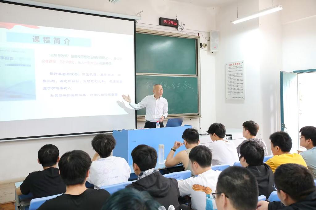 为持续贯彻落实好中共中央办公厅、国务院办公厅《关于深化新时代学校思想政治理论课改革创新的若干意见》和中共教育部党组关于《“新时代高校思想政治理论课创优行动”工作方案》的文件精神,全面贯彻落党的二十大报告重要精神,引导当代大学生增强“四个意识”,坚定“四个自信”,做到“两个维护”,10月19日,梁丁丁校长在11105教室为21级软件工程专业的学生上“形势与政策”课。