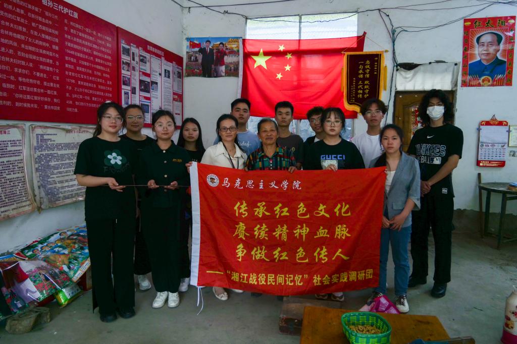 实践调研第二站——枫树脚听取祖孙三代护红旗的故事。同学们在现场听取李清鸾老人讲述为了履行红军战士的一个承诺,黄家祖孙三代如何保护红旗的故事。