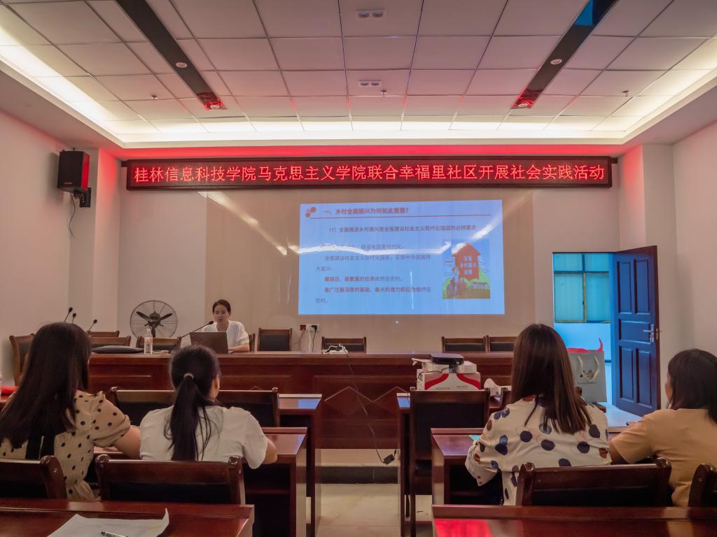 实践中,指导老师何亚慧作了“接续奋斗全面推进乡村振兴”的主题报告,从“乡村振兴为何如此重要?”、“乡村全面振兴要振兴什么?”、“基层干部如何助力乡村全面振兴?”三个方面与幸福里社区的乡村干部进行了思想的交流。团队成员就幸福里社区“五大振兴”的相关情况与乡村干部及村民们进行了进一步的交流,了解到在党的感召和引领下,搬迁群众树立了“幸福是奋斗出来的”思想观念,并逐渐融入新环境,乐居新家园,意识到要通过自己辛勤劳动真正住进“幸福里”。