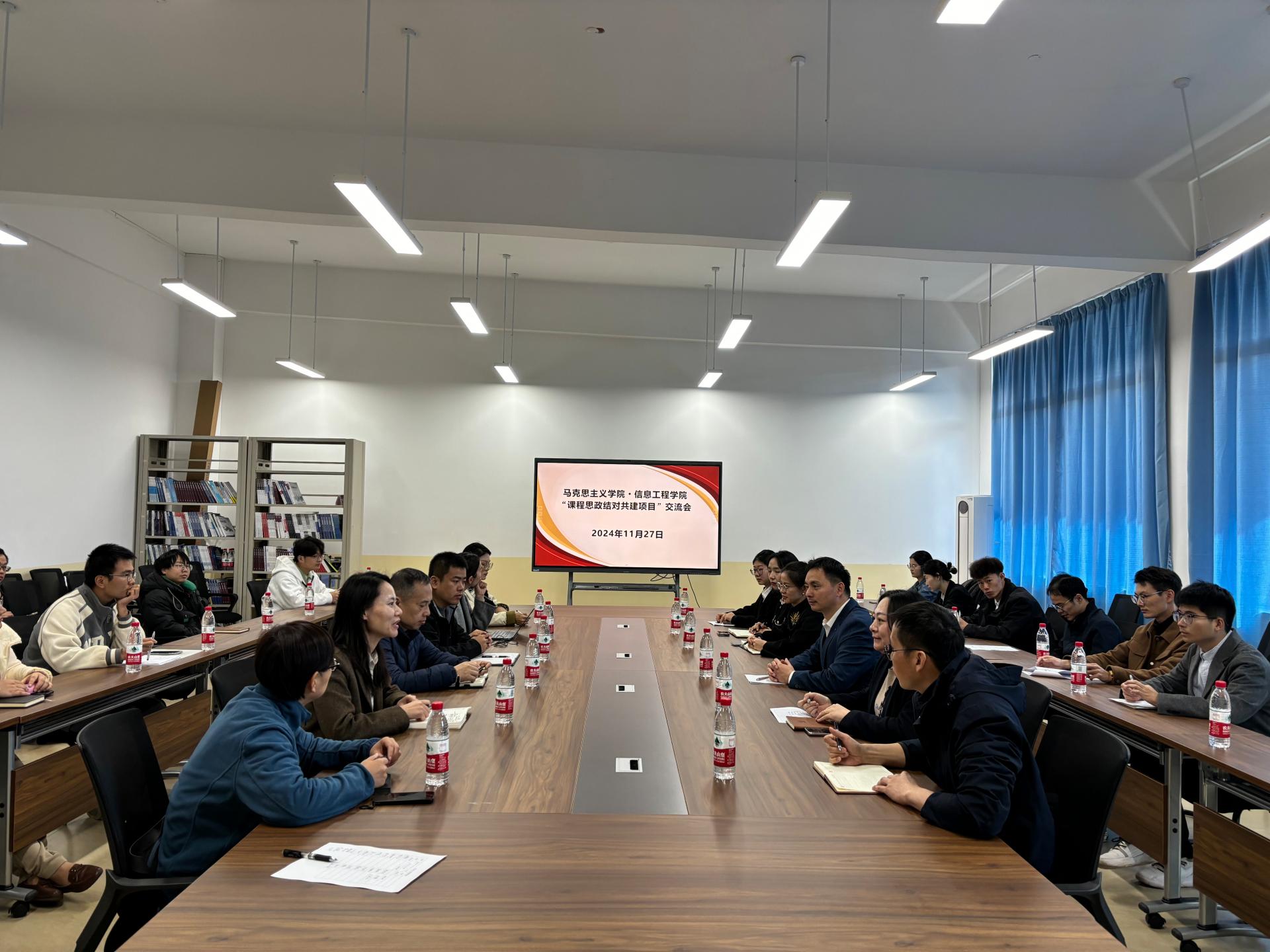 为深入贯彻落实习近平总书记对学校思政课建设作出的重要指示精神,推进思政课程与课程思政深度融合,实现思政工作与人才培养的有机融合,并形成同向同行的协同效应,近日,马克思主义学院与信息工程学院、电子工程学院、机电工程学院、商学院、创意设计学院、外贸与外语学院、体育与健康学院、数学教研部等8个学院(部)相继开展“课程思政结对共建项目”交流会。