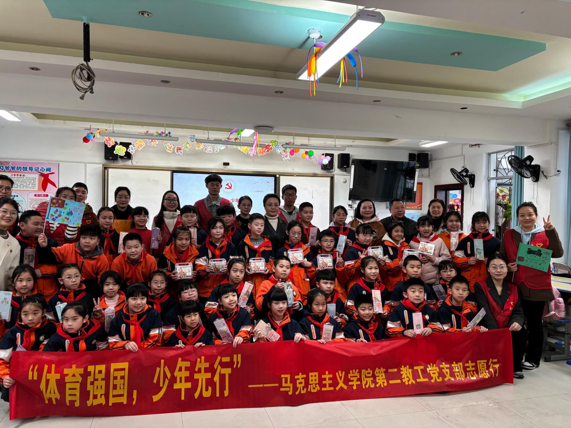 为传承和弘扬雷锋精神,3月14日,马克思主义学院第二教工党支部组织党员志愿者走进桂林市崇善小学,开展“体育强国 少年先行”主题党日志愿服务活动。活动通过趣味运动、知识宣讲等形式,为学生们送去健康与欢乐,传递体育精神。