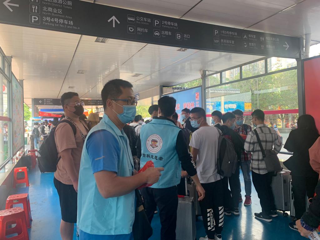 5月11日,思政与公共教学部直属党支部教师风雨坚守学生返校接站任务。当日接站工作由体育教研部的老师负责。体育教研部的教师们在暴雨中为到站学生打伞、提行李,确保学生顺利乘车。其中体育教研部周勇主任带领关永康、宾恩明、刘卓三位教师继续负责凌晨3点至5点的晚班接站任务,工作时长近20个小时,并顺利完成了当日凌晨近80名同学返校接站任务。