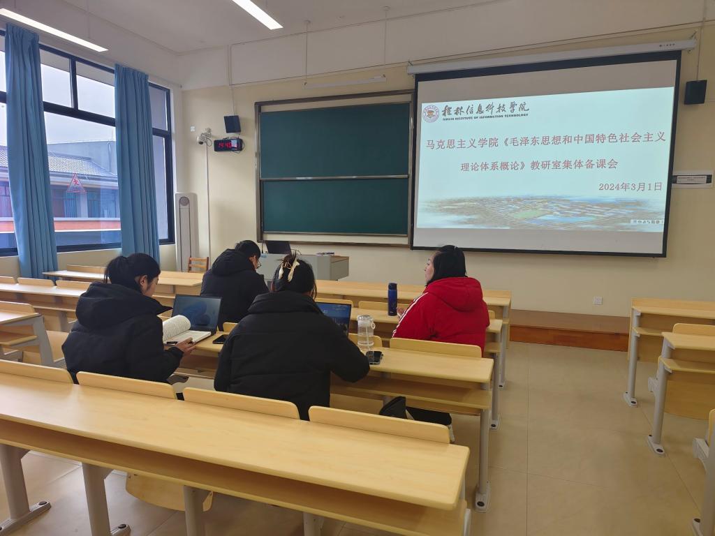 为进一步提高思政课教育教学质量,3月1日下午,马克思主义学院毛泽东思想和中国特色社会主义理论体系概论教研室举行教师集体备课会,为春季学期的教学做准备。此次会议由教研室主任剌啸媛主持。