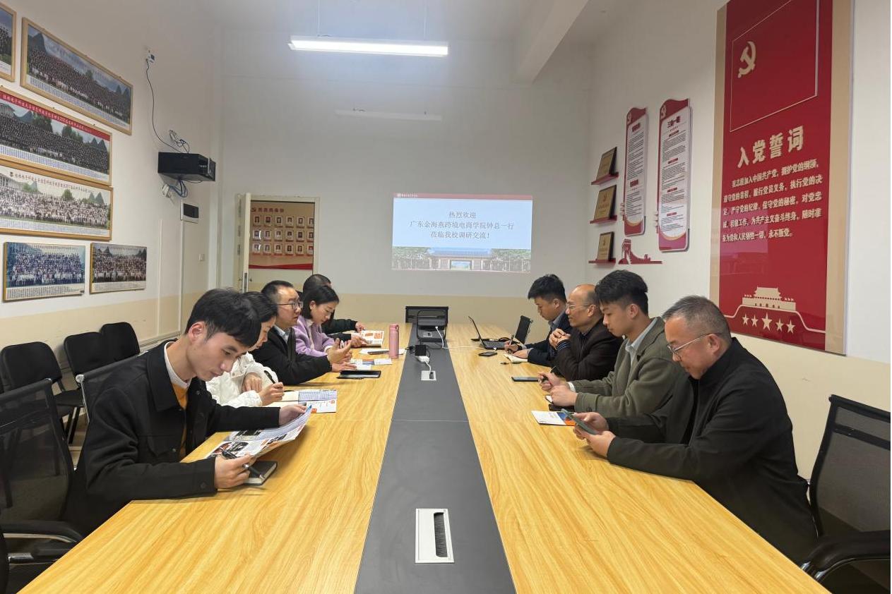 交流会上,罗志明副院长详细介绍了太阳集团商学院的办学特色、专业设置及人才培养模式,并着重介绍了学院在培养跨境电商及数字经济人才方面的探索与成果。广东金海燕跨境电商学院钟总一行则分享了企业在行业发展、人才需求及职业技能提升等方面的实践经验,并高度认可太阳集团的人才培养方向及学生综合素质。